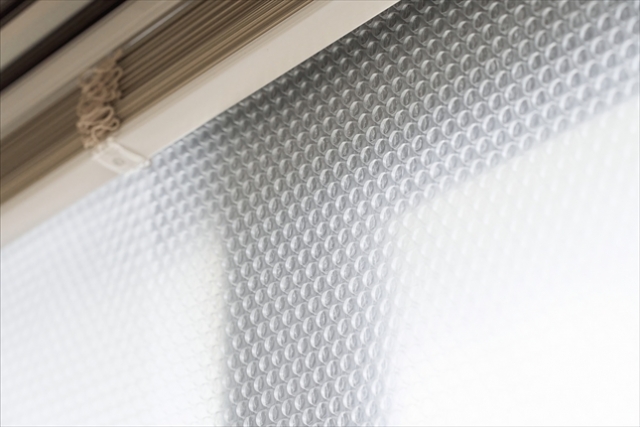 手軽にできる断熱方法として、プチプチシート(気泡緩衝材)を窓に貼る方法があります。特別な工具を使うことなく設置でき、冬場の窓の冷気を防ぐ効果が期待できます。